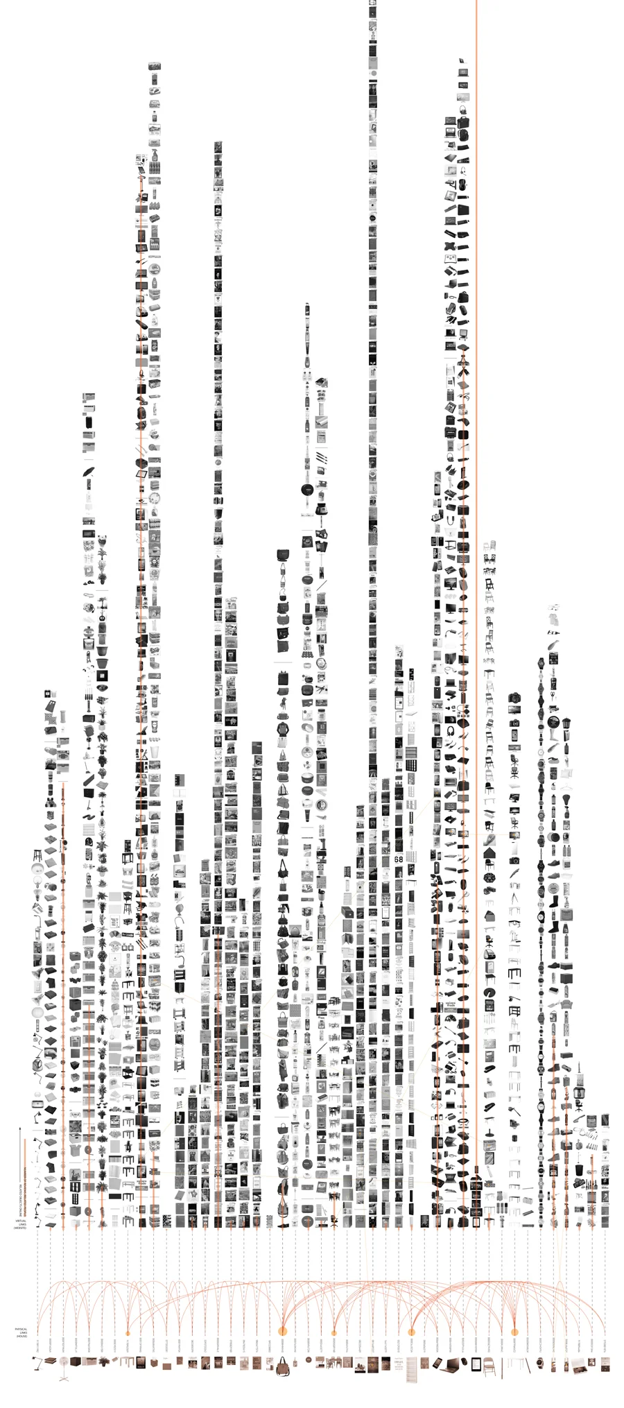 The horizontal bottom line represents the physical relationships among objects I purchased on Amazon, whereas the vertical lines represent the virtual relationships of each object in the contexts of its consumption circle