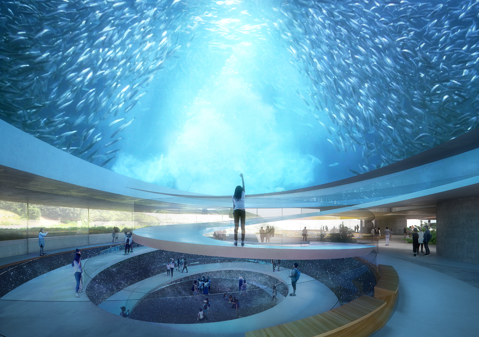 This proposal offers a unique immersive and contemplative experience. An experience where architecture and exhibition seamlessly blend, with each other and with the surrounding nature. It’s these two notions of turning around your vision for a new future, and keeping a clear horizon, that are the driving parameters behind our architectural and exhibition concept - creating an experience that can inspire future generations to great achievements. The architecture is therefore seemingly split horizontally, always allowing visitors from exterior as interior perspective to keep an open horizon for futures to come, while at the same time keeping a relationship and respect to the surrounding world and nature.